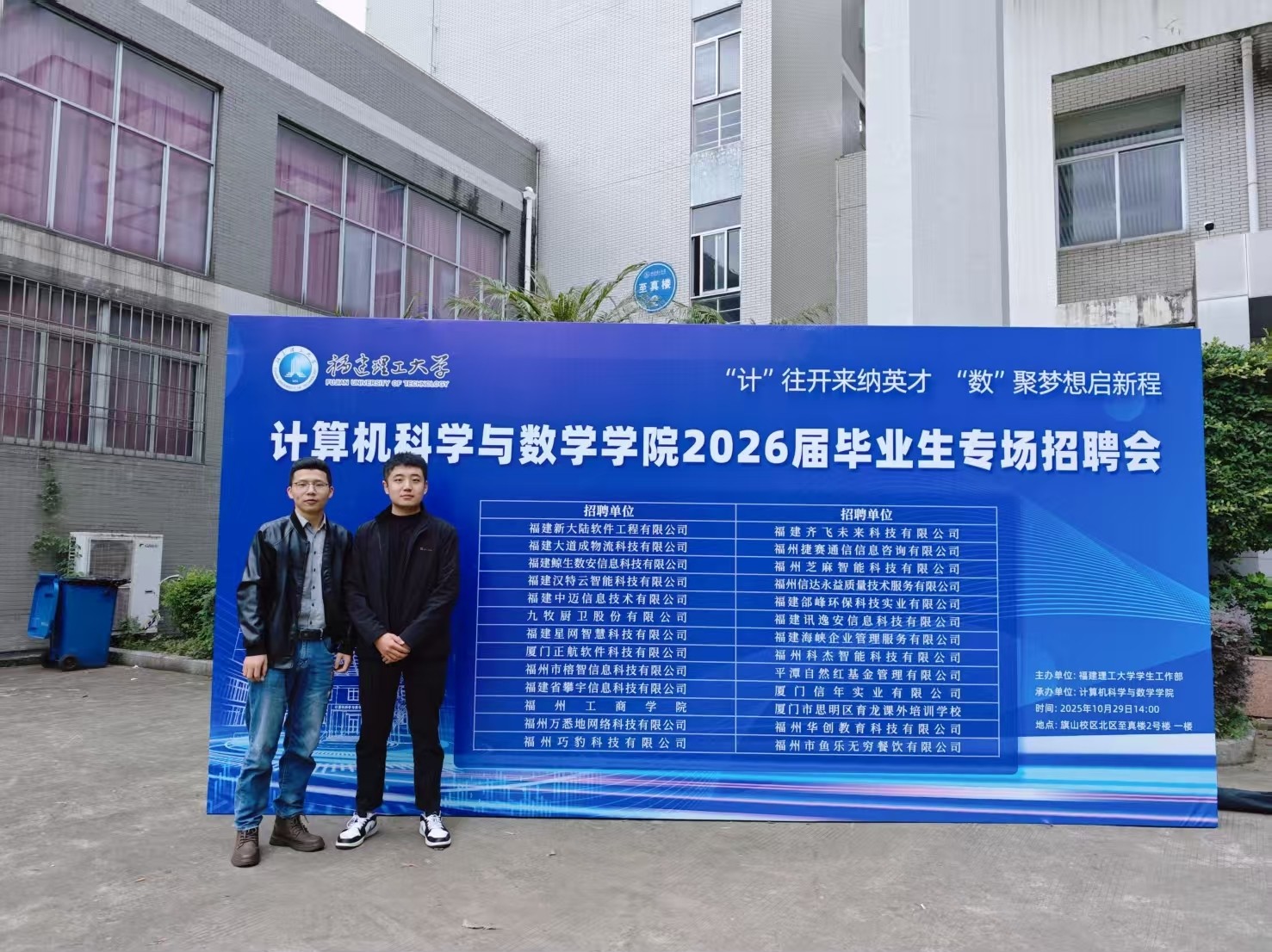 我司受邀参加福建理工大学2026届校园招聘会好年华 · 聚攀宇相约理工,“职”为你来!2025年10月29日下午,我司受邀参加福建理工大学计算机科学与数学学院2026届毕业生专场招聘会,在这场人才与机遇的盛会中,寻觅并肩同行的“千里马”。本次招聘会汇聚了学院558名优秀学子,其中计算机技术研究生86名,本科生472名,专业覆盖计算机科学与技术、软件工程、网络空间安全、数据科学与大数据技术、物联网工程、信息与计算科学、人工智能七大前沿领域,生源质量高,专业与公司从事的市场业务匹配度极佳。为满足公司快速发展的人才需求,公司对此次招聘会高度重视,挑选出当下业务发展中紧缺的技术岗位,岗位涵盖研发、设计、管理等多个方向的职位,派出了由技术部主任黄季恺与综合部主任余云奇组成的“伯乐”团队莅临招聘会现场;公司通过现场答疑、深入洽谈、展示公司成果等方式,向络绎不绝的同学们全面介绍了攀宇科技的发展蓝图与人才需求。招聘会现场,气氛温馨热烈,毕业生们踊跃参与,积极投递简历,主动与我司招聘团队交流;面对同学们密切关注的职业发展路径、薪酬福利体系、企业文化与工作环境等热点问题,招聘团队与大家展开了“面对面”的零距离互动,耐心细致地一一解答。通过现场的沟通交流,不仅消除了毕业生们的疑虑,还为毕业生们指明了就业方向,同时也极大地提升了我司在高校学子中的知名度与吸引力。千里马常有,而伯乐不常有。此次校园招聘不仅能为公司的发展注入新鲜的血液与活力,也为未来公司发展储备了人才;公司始终欢迎每一位有志之士的加入,无论你是刚刚毕业即将步入职场的大学生,还是已经在职场中摸爬滚打的IT人,只要你有梦想,有热情,有能力,我们都将赋予“千里马”无限的发展空间,让我们一起攀蟾折桂,一起向未来。秋季教研会议福建省攀宇信息科技有限公司于2019年10月落地福州。我们是一家以客户为中心,以服务求生存,以信誉得发展,以实力谋未来的互联网科技企业。专注基础软件、网络信息安全软件、支撑软件、应用软件开发服务,互联网、物联网、人工智能技术服务及大数据服务。创业六年以来,公司踔厉奋发,笃行不怠,拥有经验丰富的IT独立研发团队和新媒体运营团队;公司先后荣获“福建省科技型中小企业”和福州市高新区“雏鹰企业”认定,2021年12月公司荣获“国家高新企业”资质认证,2023年7月公司荣获泉州市级“科技特派员工作站”、泉州市“首批产教融合型企业建设培育单位”及泉州市级“众创空间” 。END 来源 | 福建攀宇科技 排版 | 陈颍 审核 | 综合部 声明 | 本文章版权归福建攀宇科技所有,转载请注明出处福建攀宇科技匠心攀宇,暖心服务攀蟾折桂,宇量深广我坚信,分享、收藏、在看、点赞是不耍流氓的鼓励!