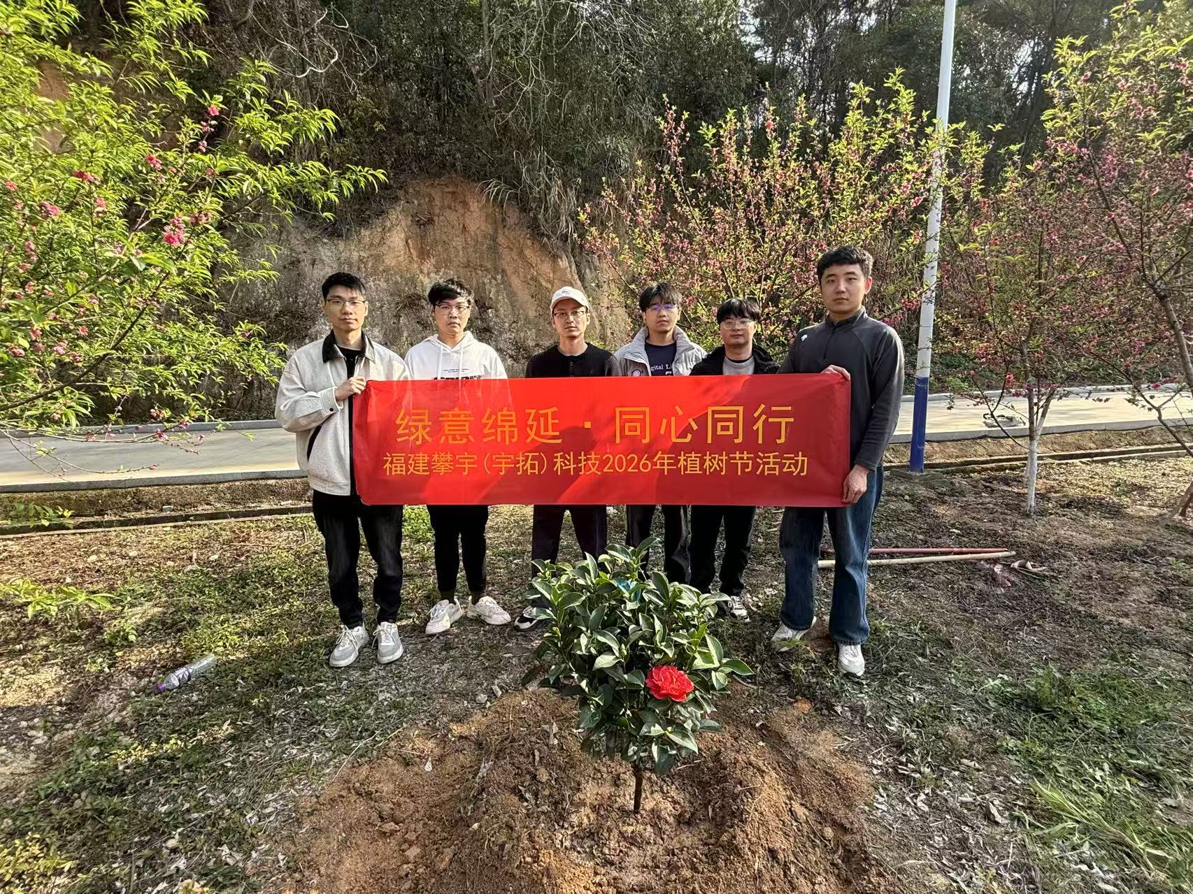- 2026年福州大学植树节活动 -绿意绵延同心同行春风拂面,绿意绵延;万物竞发,同心同行。在第48个植树节到来之际,2026年3月10日,福建攀宇(宇拓)科技再次组织在榕员工前往福州大学铜盘校区,开展以“绿意绵延·同心同行”为主题的植树护绿活动。这已是公司连续第四年对“攀宇同心树”进行精心养护,今年更添新意——我们在守护好老树的同时,攀宇人又携手种下两株新的树苗,为这片承载希望的土地再添一抹生机。01植树造林 种植未来四年,是一棵树从幼苗到成林的初长成;四年,也是一个企业从扎根到成长的缩影。2023年,我们在福州大学这片热土上种下第一棵“攀宇同心树”;2024年和2025年,我们一次次回来,为“攀宇同心树”施肥浇水、除草修枝,让它茁壮成长;2026年,当我们再次站在这片绿意盎然的土地上,眼前的“攀宇同心树”已枝繁叶茂,成为校园中一道独特的绿色风景。春暖花开 播种未来午后两点半,阳光正好,微风不燥。公司后勤团队早早将工具准备妥当,员工们热情高涨,分组协作。一部分人继续为“攀宇同心树”松土施肥、清理枯枝,另一部分人则拿起锄头、铁锹,在相邻的空地上挖坑、扶苗、培土、浇水,认真栽下两棵全新的树苗。大家分工有序,配合默契,现场劳动热火朝天,笑声与汗水交织成一幅动人的春日画卷。ARBOR DAY02植树造林 播种希望 “看着老树一年比一年高大,心里特别有成就感;今年携手新员又一次亲手种下新树,感觉到公司生机勃勃,不仅仅见证了企业的成长,更象征着攀宇科技发展的无限生机。”连续四年参与植树护绿活动的老员工深情感慨道。而新入职的员工也兴致勃勃,他们为新树挖坑、施肥、浇水,寓意着企业的未来如新苗般充满无限可能。2026.3.122023年种下的“攀宇同心树”见证了公司四年的坚守与成长,2026年种下的两株新树苗则象征着新的起点与传承延续。未来,福建攀宇(宇拓)科技将继续携手福州大学国家大学科技园,深耕绿色公益,推动生态文明建设,让“绿水青山就是金山银山”的理念在企业文化中生根发芽,开花结果。让我们继续携手同行为大地添绿,为攀宇蓄力老树新枝,皆是希望每一次坚持都是对地球最深情的告白每一棵树都是我们共同守护的明天END 来源 | 福建攀宇科技 编辑 | 刘雅洳 审核 | 综合部 声明 | 本文章版权归福建攀宇科技所有,转载请注明出处福建攀宇科技匠心攀宇,暖心服务攀蟾折桂,宇量深广我坚信,分享、收藏、在看、点赞是不耍流氓的鼓励!